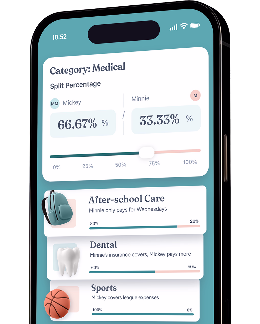 “Our decree specifies a 62/38 split for medical. Every other app I tried forced me into 50/50 or round numbers. This one just... lets me type in exactly what the agreement says. Seems small but it matters a lot."